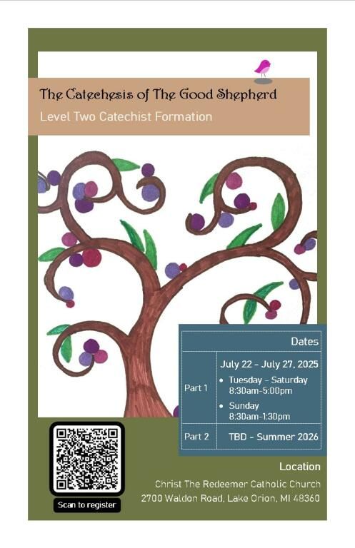 Thanks to a generous donor family, our parish is able to cover ALL tuition costs for catechist formation courses. If you are willing and able to take the 90 hours of training, please call Suzy Rhadigan, our CTR Director of Children’s Formation at 248-391-1621 ext. 120 to register.