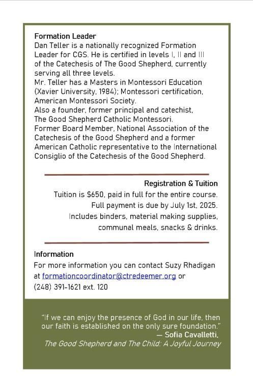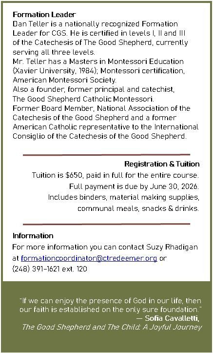 CLICK HERE if you are interested in taking the official CGS certification formation course recognized by the Archdiocese of Detroit.